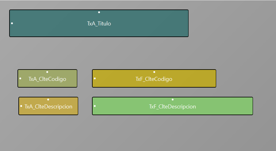 Mira cada vez que creas un control esa se presenta con un color , asi es mas facil saber cuando ves el control asocias el color a un control igual a otros o diferente es una manera muy ingeniosa de presentar los controles, dependiendo del control podras cambiar los atributos asi que pronto te iras familiarizando viendo los que los demas hacen y como lo hacen ademas de que hay muchos ejemplos que la gente comparte.