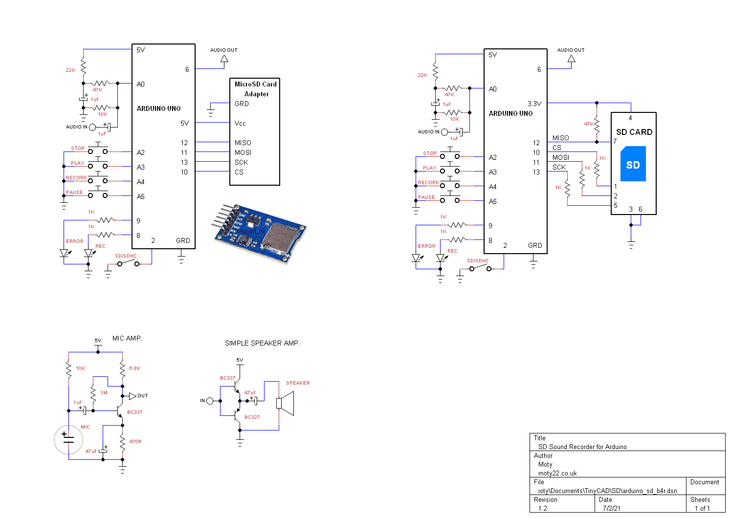 The schematic gives the option to wire an SD or a module with micro SDHC.