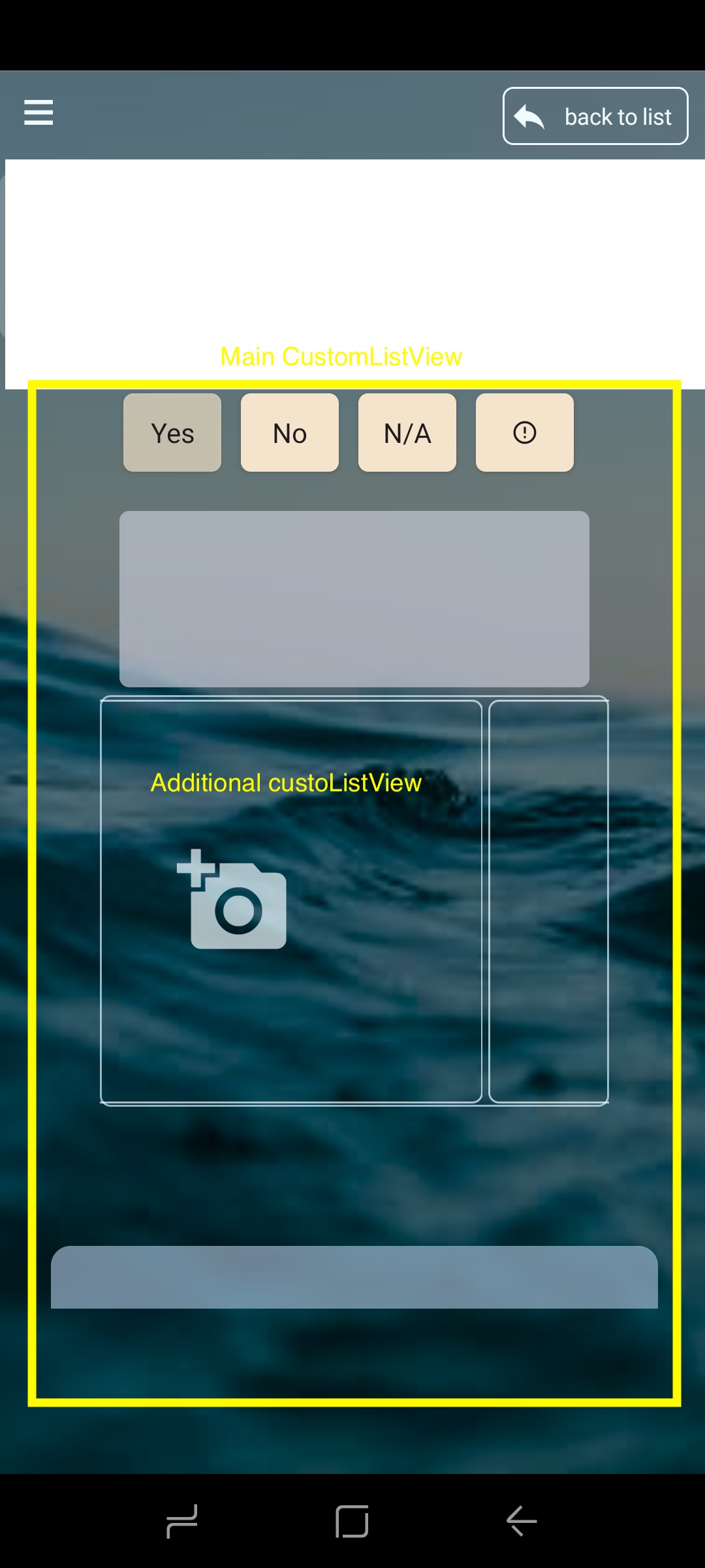 Such interface I'm using for take pictures. Everything working well, exempt view taken picture in horizontal CLV item (imageView).