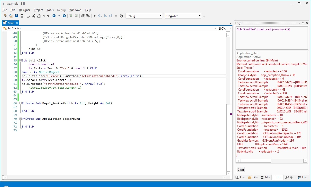 I'm using an iphone6 with ios 8 or 9. What happens is the text appends to the textview nicely but when it reaches the bottom it does not scroll up as I expect it should it just hides off the view unless I manually scroll the textview up then the scroll triggers upon each add.