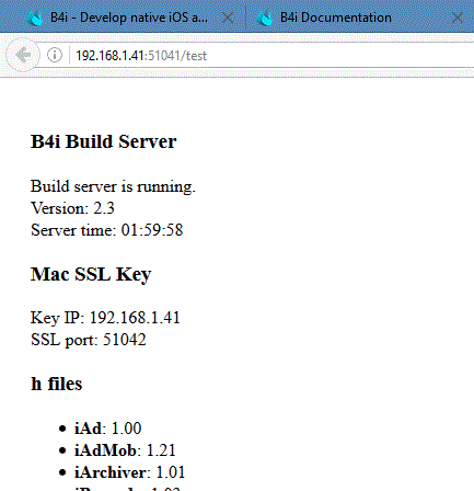 Erel, I think I`m having the same problem. Ping works fine, I can see the test page fine in both Mac and Windows browsers, Designer works fine and I can compile to the simulator. When I compile to the device the app never arrives there, even though the ide says compile successful and the debugger runs, I just get a blank white screen on both my ipad and iphone with the title "B4A-Bridge". I say I think its the same problem because I have the network 0.0.0.0 address in the compiler log as does Wave.