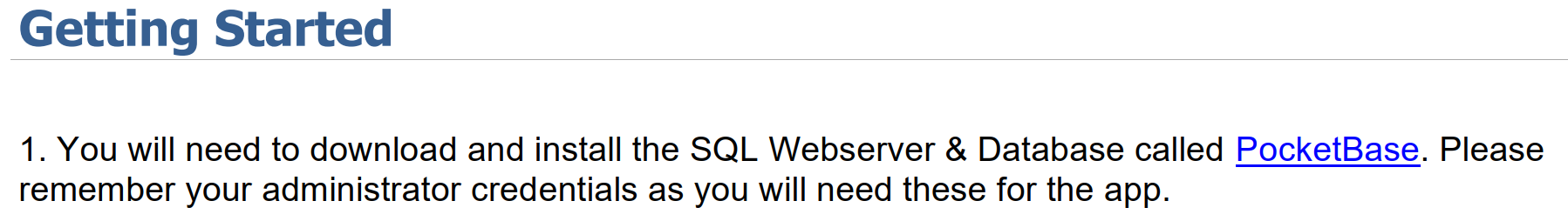 NB: Download and run PocketBase and set up an admin account there first. Here is the link
