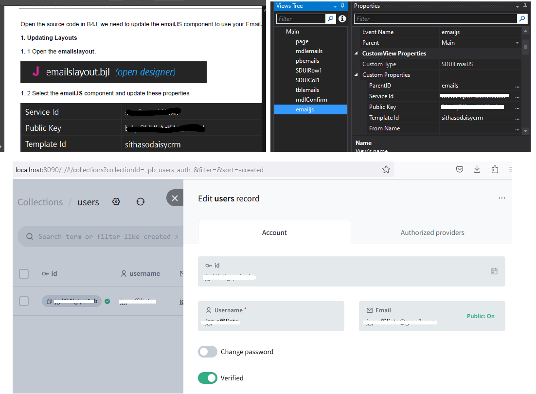 I'm trying to setup SithasoDaisy: Mini CRM WebApp - PocketBase but the "True" alert did not show up, just keeps on loading as shown. Using Pocketbase v.0.17.2, transpiling did proceed without error after I have manually created the folder "C:\laragon\www\pmu\assets." I done Laragon at port 8080 and Pocketbase at port 8090 accordingly, have followed the guide and presume that the service ID as shown corresponds to the key ID in Pocketbase as what I have done. What have I missed?