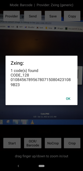 "mybytes" is the byte array returned from the inline java code that holds the relative width of each bar/space