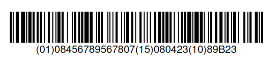 uccEan128.setCode("(01)08456789567807(15)080423(10)89B23");