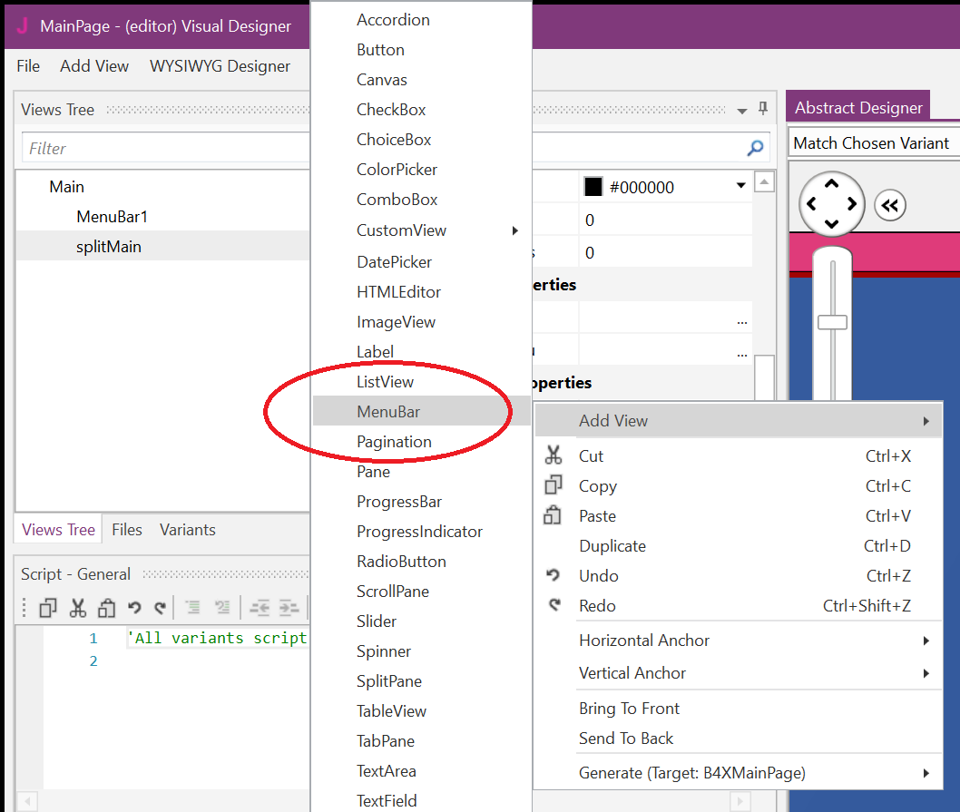 I'm studying the expert's code about page setup.His code show how to set page setup, so I 've tried to create a tiny project by adding menu bar by fxml Designer, but I can't find strategy when I need generate module in B4J Code.
