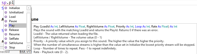 public final int play (int soundID, float leftVolume, float rightVolume, int priority, int loop, float rate)​