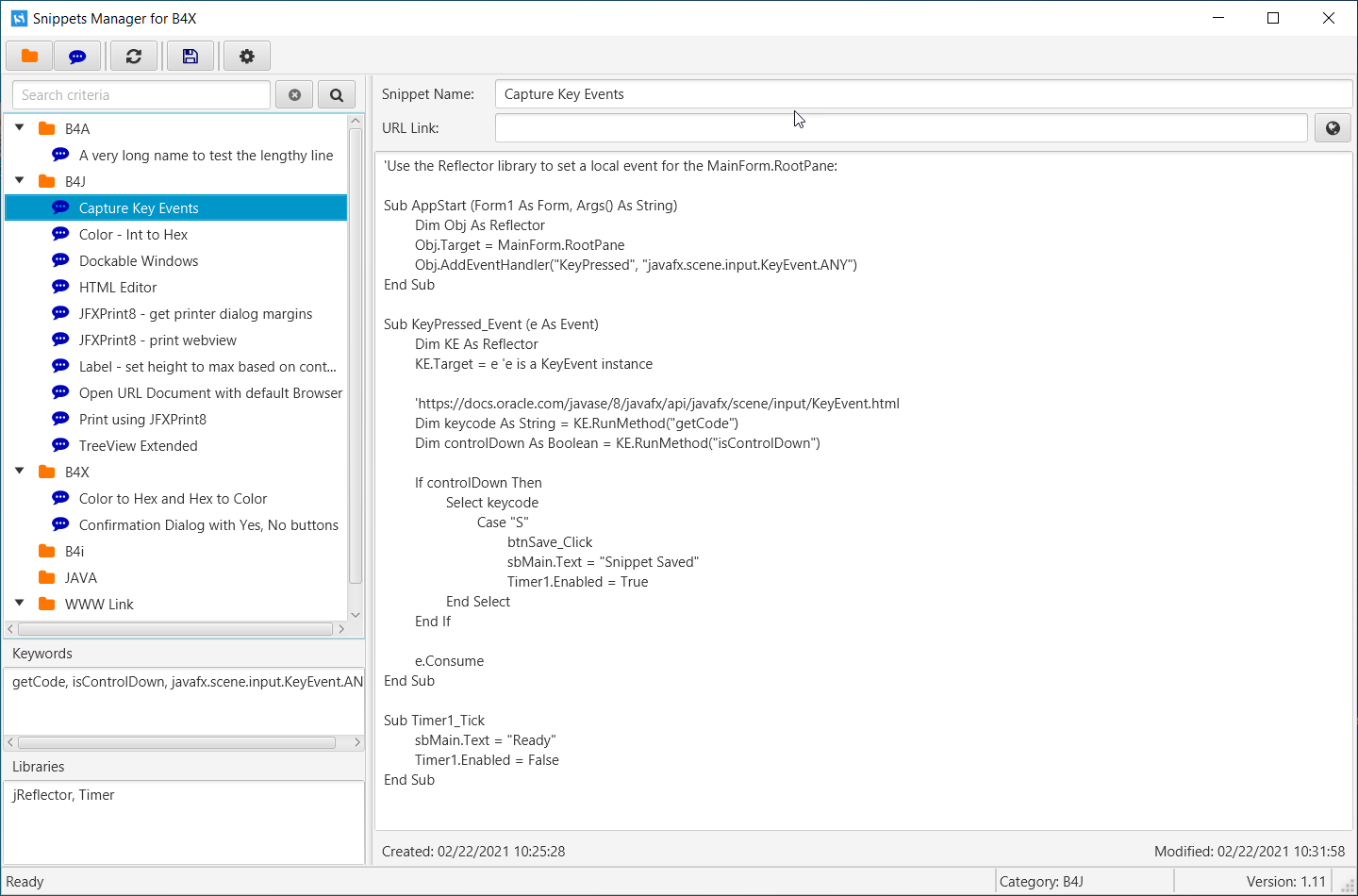 - comes with the main Categories: B4A, B4J, B4i, JAVA, and WWW Links. Of course, you can add your own category, as many as you want.