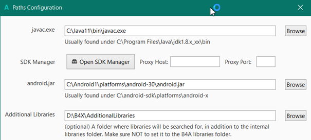 Then, set C:\B4X\AdditionalLibraries as the Additional Libraries folder in the Path Configuration.