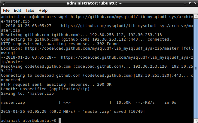 wget https://github.com/mysqludf/lib_mysqludf_sys/archive/master.zip