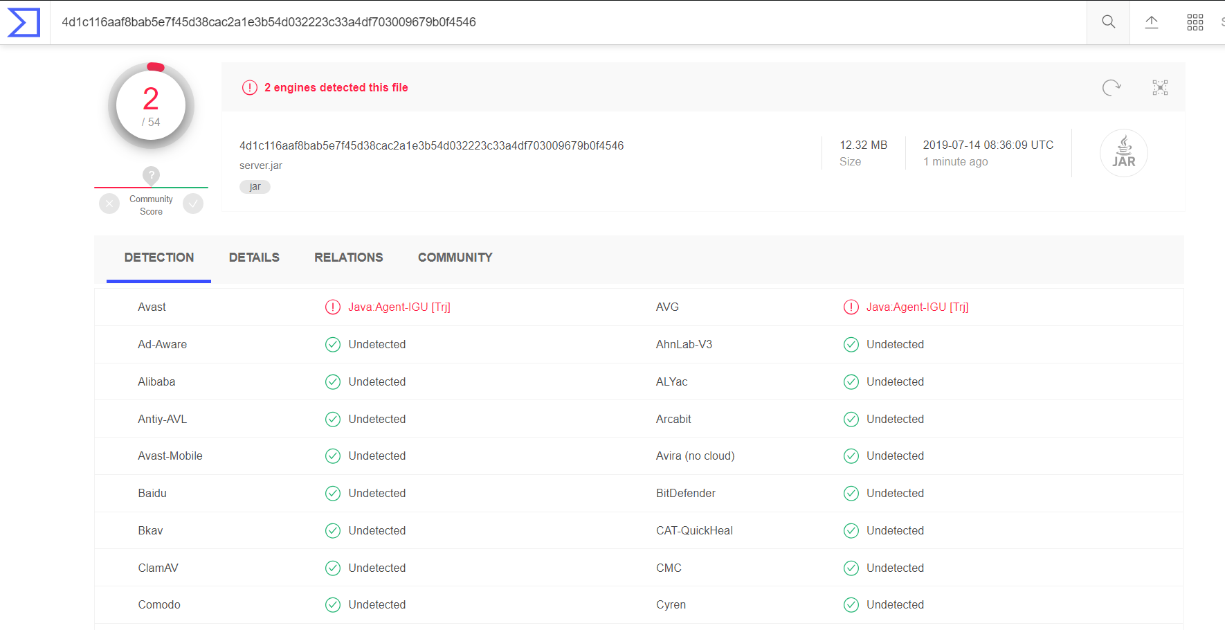 The site reported that Avast and AVG detected the 2/54 Trojan. I have doubts about these ativiruses.
