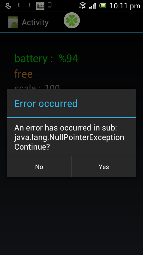 khosrwb Active Member Licensed User Longtime User Sep 22, 2014 #1 hi Erel when run program show this error please help me Attachments Screenshot_2014-09-23-22-11-30.png 43.4 KB · Views: 194