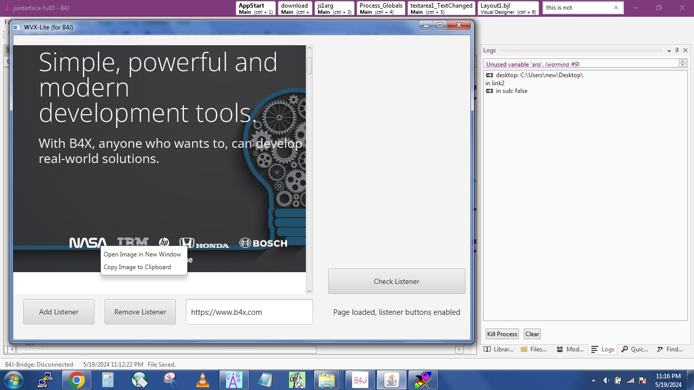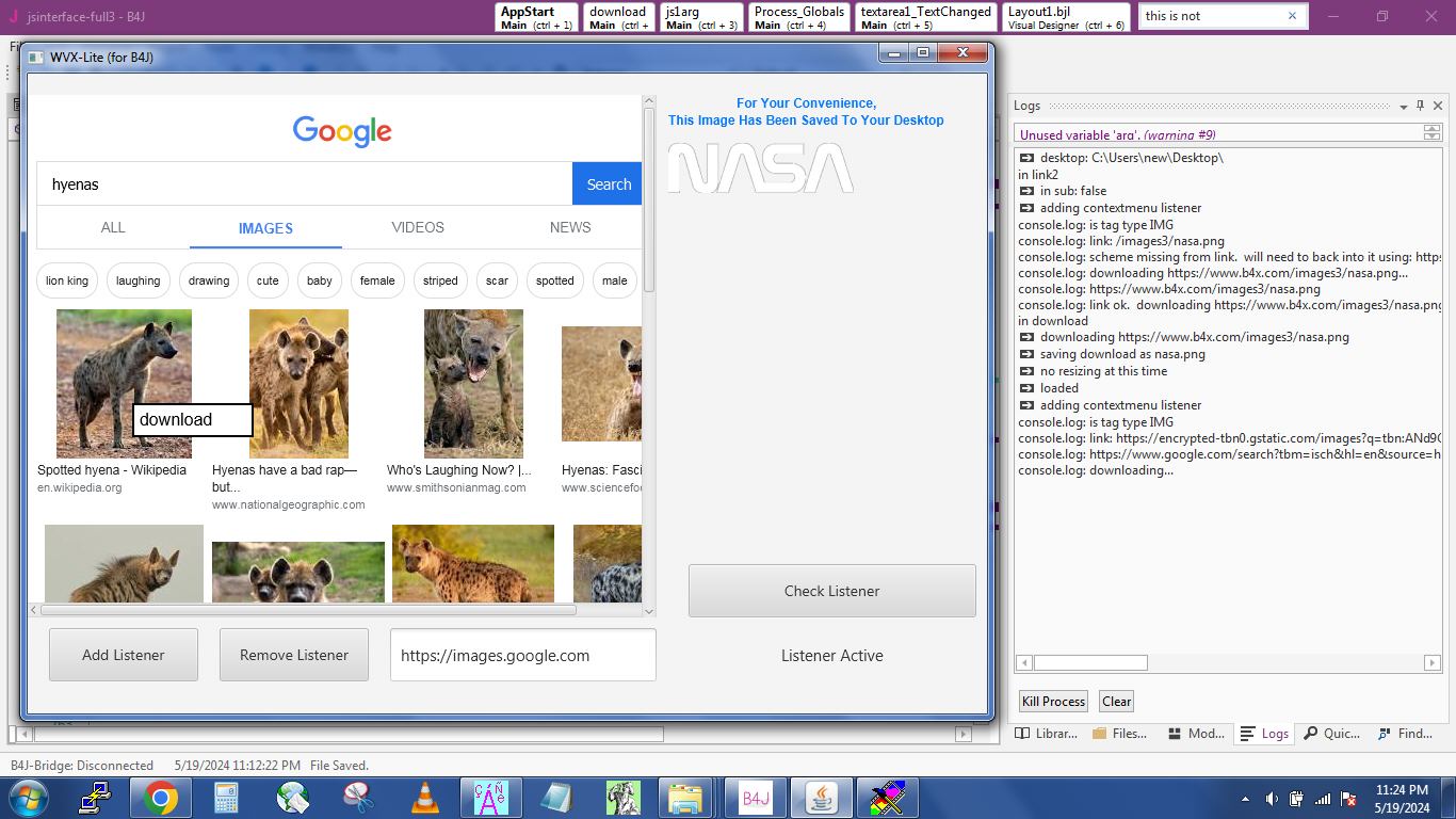 2) standard right click on b4x.com "nasa" image. (screen cap doesn't show where the cursor clicked)